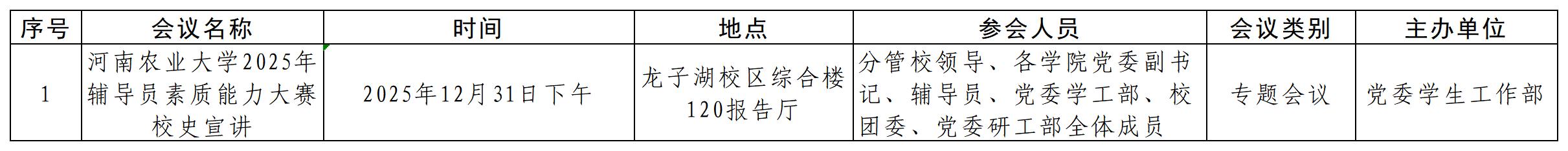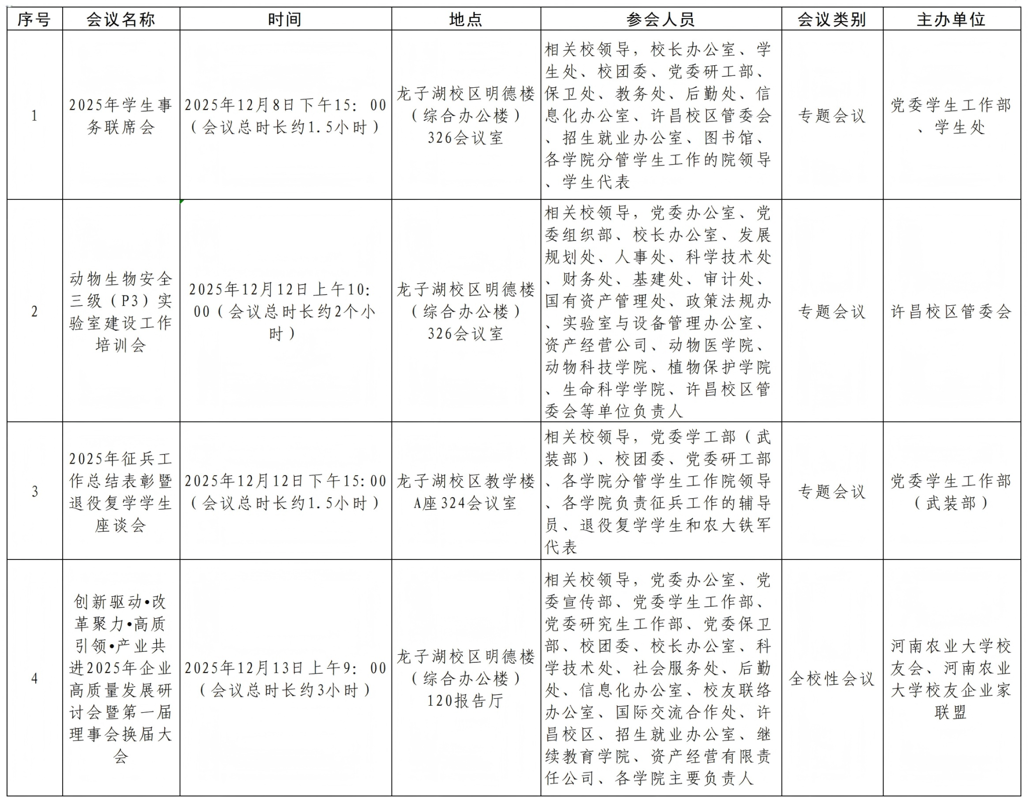 会议通知:2025-2026学年第一学期第十四周会议安排(12月1日—12月7日)